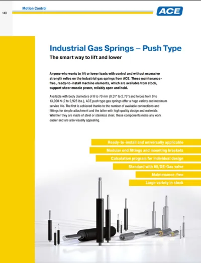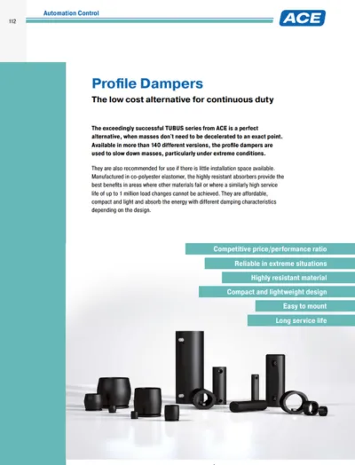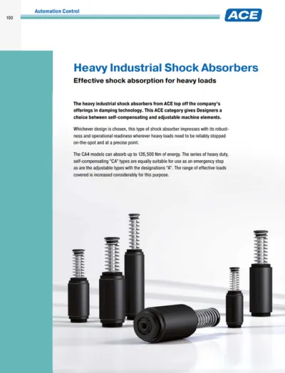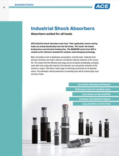 Catálogos CompletosControl de AutomatizaciónControl de MovimientoControl de VibraciónProductos de SeguridadCatálogos por CategoríaShock Absorbers en MiniaturaShock Absorbers IndustrialesShock Absorbers Industriales Heavy DutyAmortiguadores de PerfilAlmohadillas de amortiguaciónIndustrial Gas Springs – Push TypeIndustrial Gas Springs – Pull TypeHydraulic DampersHydraulic Feed ControlsRotary DampersBrochureShock Absorbers viscoelásticosACE Corporate Brochure 2018PET Shock Absorbers BrochureControl de movimiento, vibración y ruido