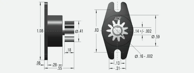 Materiales: Cuerpo exterior, eje y engranaje: Plástico