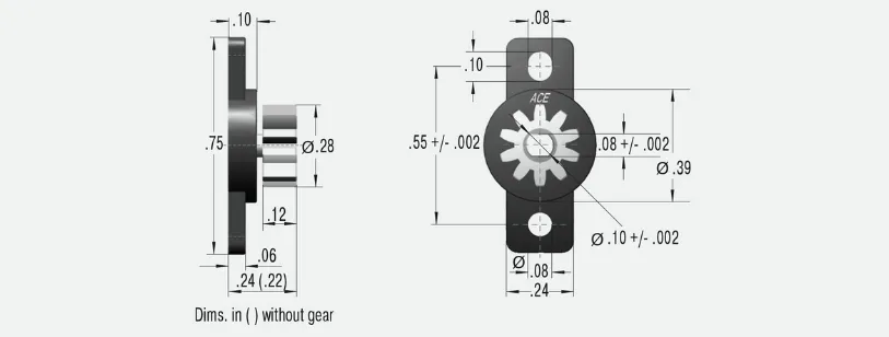 Los amortiguadores rotativos se fabrican según especificaciones métricas. Para obtener medidas precisas, consulte el catálogo de amortiguadores rotativos de ACE o póngase en contacto con un experto en aplicaciones.