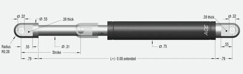 Los gas springs industriales ACE ofrecen un soporte ideal para el esfuerzo manual, con fuerzas desde 2 hasta 2,923 lb (10 a 13,000 N) y diámetros de cuerpo de 0.31″ a 2.76″ (8 a 70 mm). Estos sistemas sellados y de gran durabilidad están listos para instalarse, no requieren mantenimiento y se llenan con gas nitrógeno presurizado.