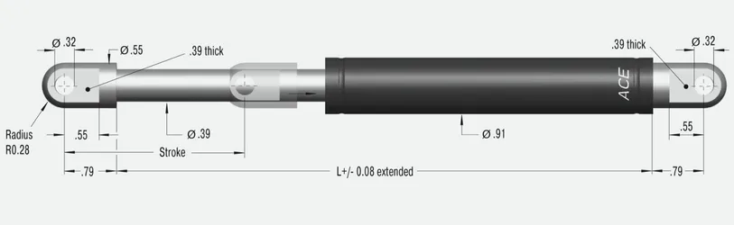 Los gas springs industriales ACE ofrecen un soporte ideal para el esfuerzo manual, con fuerzas desde 2 hasta 2,923 lb (10 a 13,000 N) y diámetros de cuerpo de 0.31″ a 2.76″ (8 a 70 mm). Estos sistemas sellados y de gran durabilidad están listos para instalarse, no requieren mantenimiento y se llenan con gas nitrógeno presurizado.