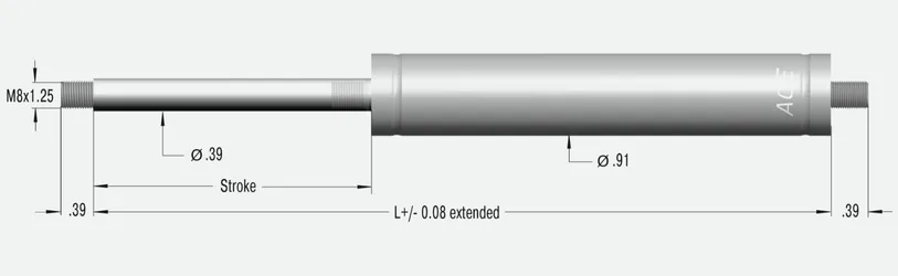 Montaje: En cualquier posición. Se recomienda instalar con el vástago hacia abajo para aprovechar la amortiguación integrada al final del recorrido.