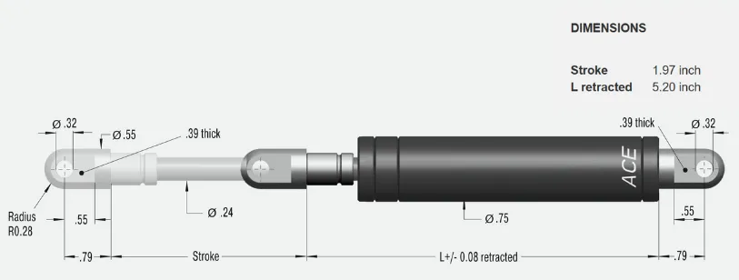 La solución cuando el espacio es limitado: si no es posible utilizar gas springs tipo empuje debido a restricciones de espacio, los gas springs industriales tipo tracción de ACE son la alternativa ideal. Funcionan a la inversa de un modelo de empuje estándar: el vástago se retrae cuando el cilindro está descargado y la presión interna del gas lo atrae hacia el interior.