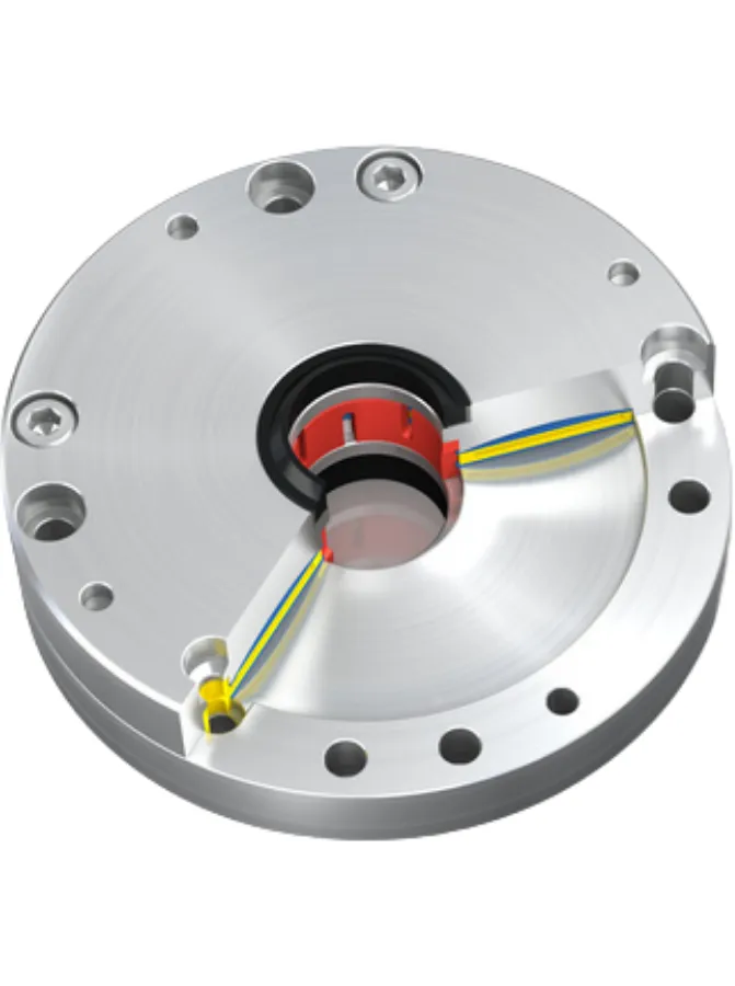 La sujeción se realiza mediante un sistema de placas con resorte de diafragma y se libera al aplicar aire comprimido. Los elementos de la familia LOCKED PRK absorben fuerzas en barras con diámetros de 20 mm a 40 mm (0.79 a 1.57 in), tanto axial como rotacionalmente. Esta funcionalidad los hace adecuados como sujeción estática sin presión, ya que la pérdida de presión neumática activa el bloqueo inmediato. Sus altas fuerzas de sujeción, junto con costos de sistema reducidos frente a soluciones hidráulicas o eléctricas, los convierten en una opción especialmente atractiva.