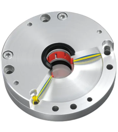La sujeción se realiza mediante un sistema de placas con resorte de diafragma y se libera al aplicar aire comprimido. Los elementos de la familia LOCKED PRK absorben fuerzas en barras con diámetros de 20 mm a 40 mm (0.79 a 1.57 in), tanto axial como rotacionalmente. Esta funcionalidad los hace adecuados como sujeción estática sin presión, ya que la pérdida de presión neumática activa el bloqueo inmediato. Sus altas fuerzas de sujeción, junto con costos de sistema reducidos frente a soluciones hidráulicas o eléctricas, los convierten en una opción especialmente atractiva.