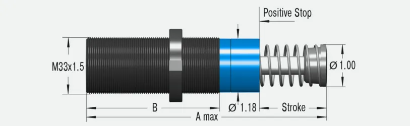 ACE utiliza un programa propio de cálculo personalizado para diseñar cada amortiguador de acuerdo con la aplicación específica del cliente. Esta personalización ayuda a reducir el riesgo de fallas y de selección incorrecta del producto. Gracias a la curva característica optimizada para cada aplicación, la absorción de energía de estos elementos hidráulicos puede incrementarse a más del doble en comparación con un amortiguador industrial MAGNUM por carrera. Los usuarios se benefician de una vida útil de hasta 1,000 ciclos completos de paro de emergencia a carga máxima, con una excelente relación costo-beneficio. Su diseño compacto, en tamaños de rosca M33x1.5 a M64x2, facilita su integración en aplicaciones existentes.