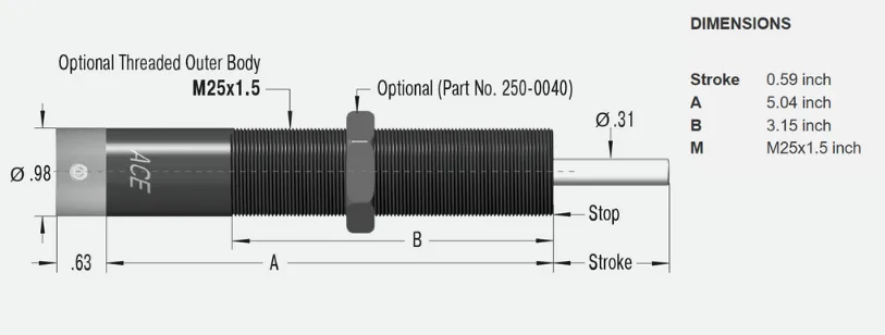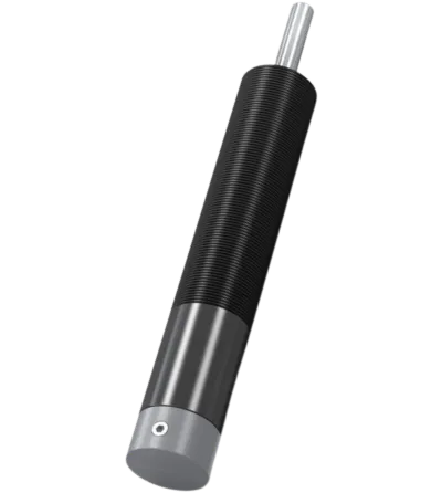 A medida que el aceite hidráulico es expulsado a través de la abertura de estrangulación, se obtiene una velocidad de avance constante durante toda la carrera. En los modelos con carrera de hasta 2.17″ (55 mm), el probado diafragma enrollado —conocido de los shock absorbers ACE— funciona como sello dinámico, compensación de volumen del vástago y elemento de retorno.